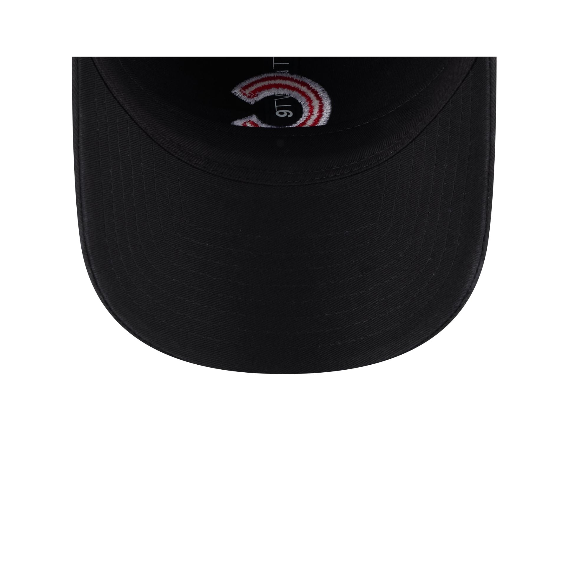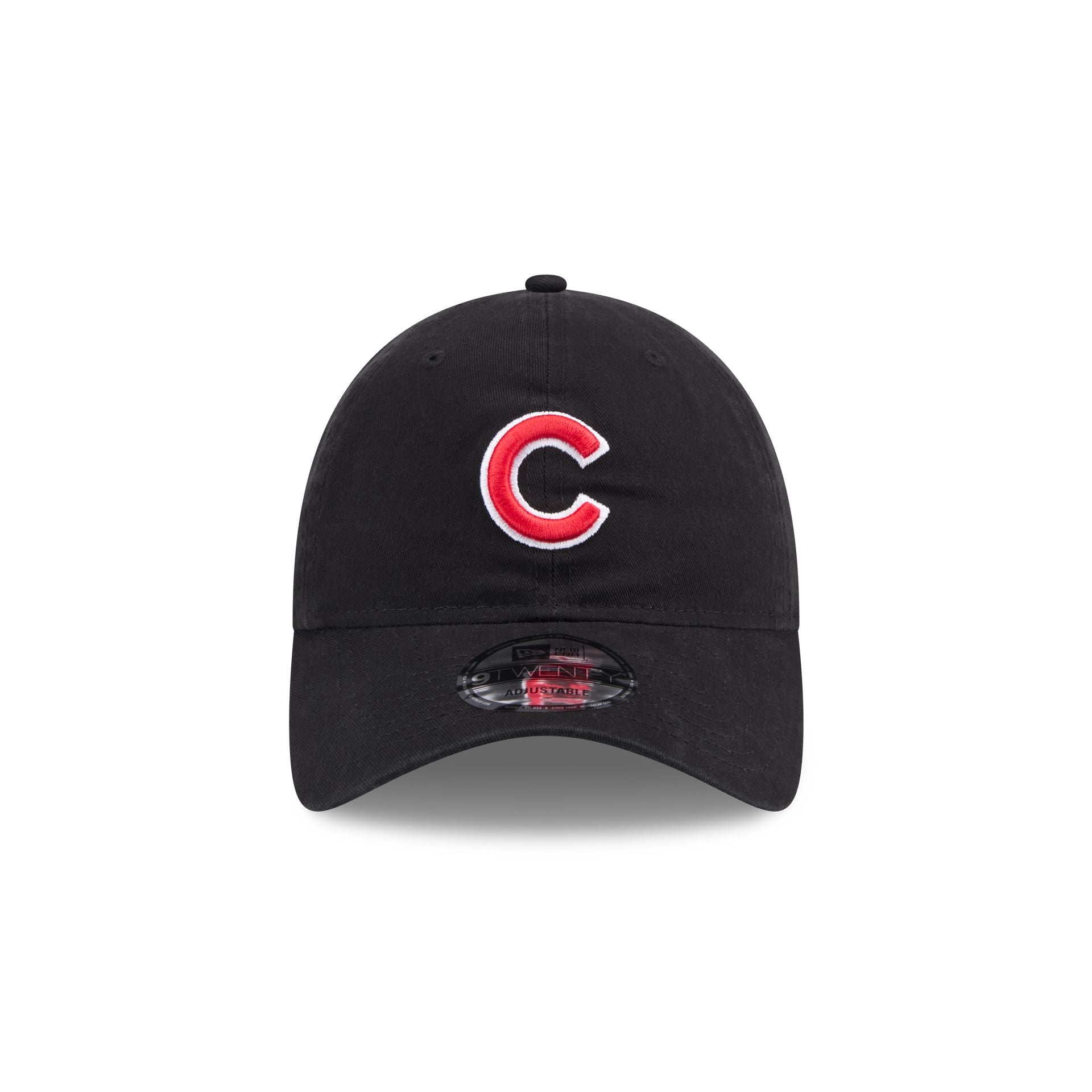 The Chicago Cubs Black 9TWENTY Adjustable Cap features an embroidered Cubs logo at the front panels with a matching woven team logo tag at the adjustable D-Ring closure at the rear.