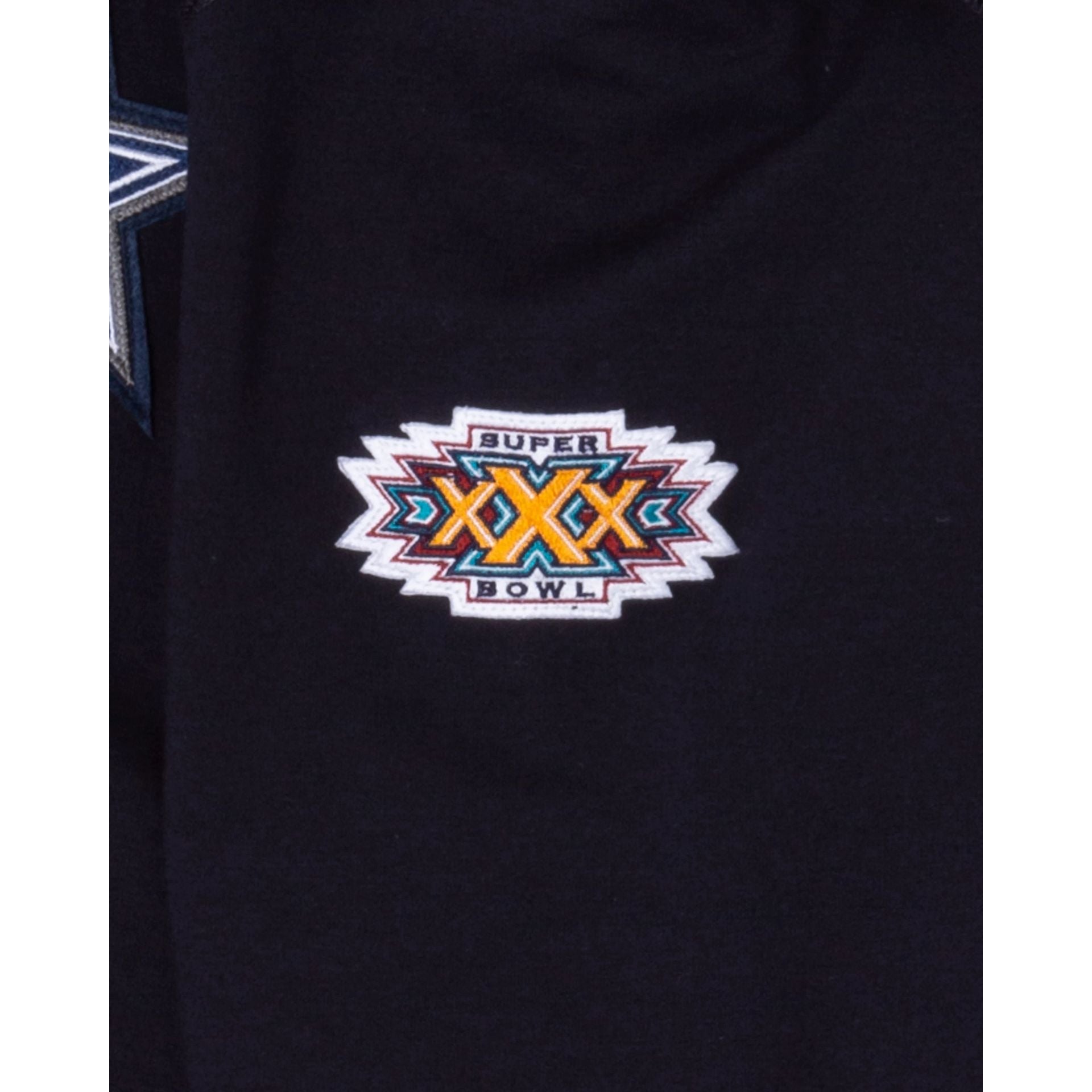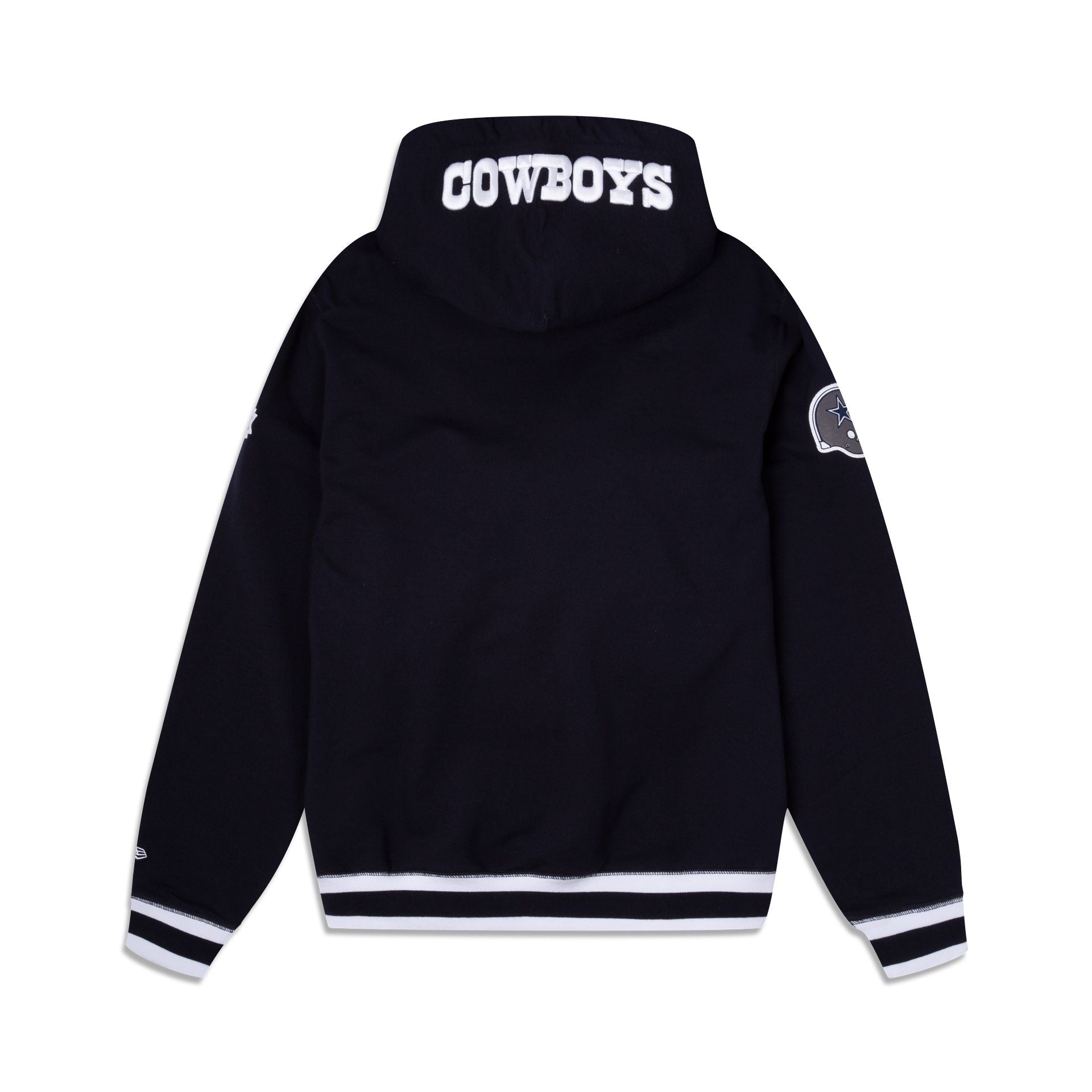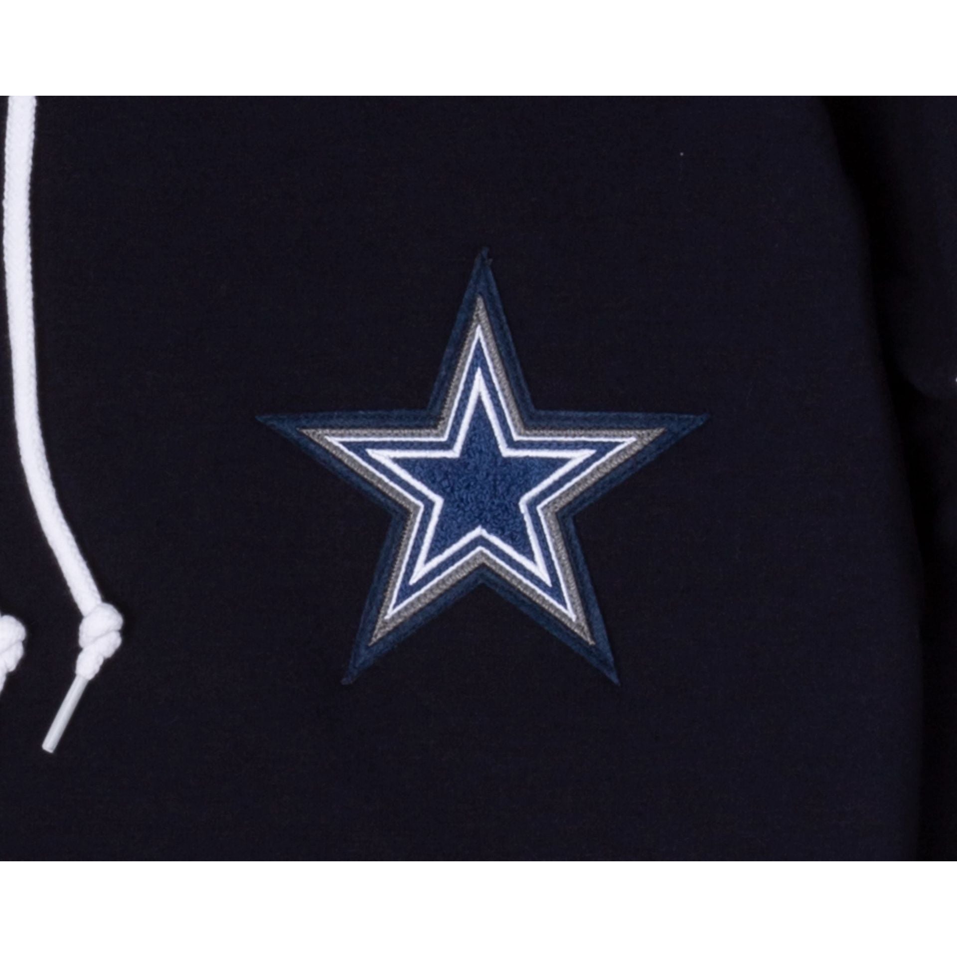 The Dallas Cowboys Logo Select Hoodie features a chenille applique Cowboys logo at the left chest with team patches at each sleeve and an embroidered team wordmark at the hood.