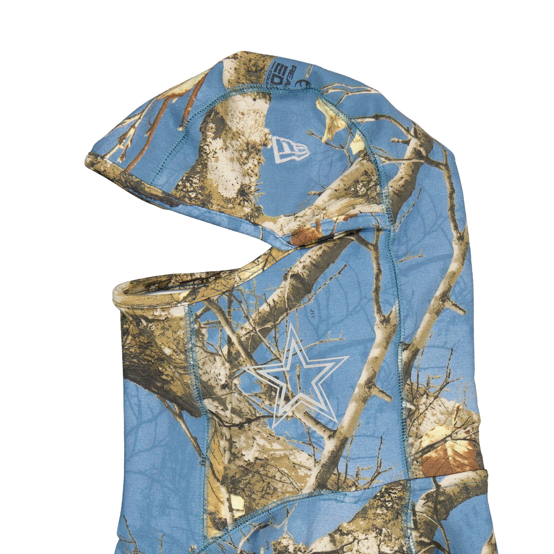 The Dallas Cowboys Realtree Balaclava Hoodie features a screen-printed Cowboys reflective ink wordmark at the front and logo at the hood.