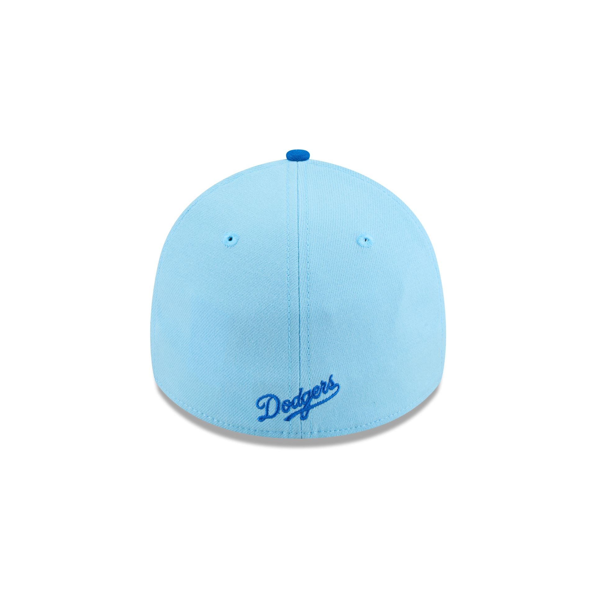 The Los Angeles Dodgers Independence Day 2025 39THIRTY Stretch Fit Cap features an embroidered American flag themed Dodgers logo at the front panels with a matching team wordmark at the rear. a blue visor. and a gray undervisor.