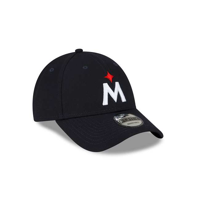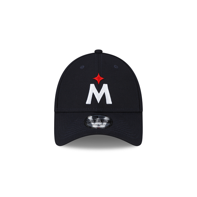 The Minnesota Twins Core Classic Road 9FORTY Adjustable Cap features an embroidered Twins logo at the front panels with a team wordmark on an adjustable hook and loop strap at the rear.