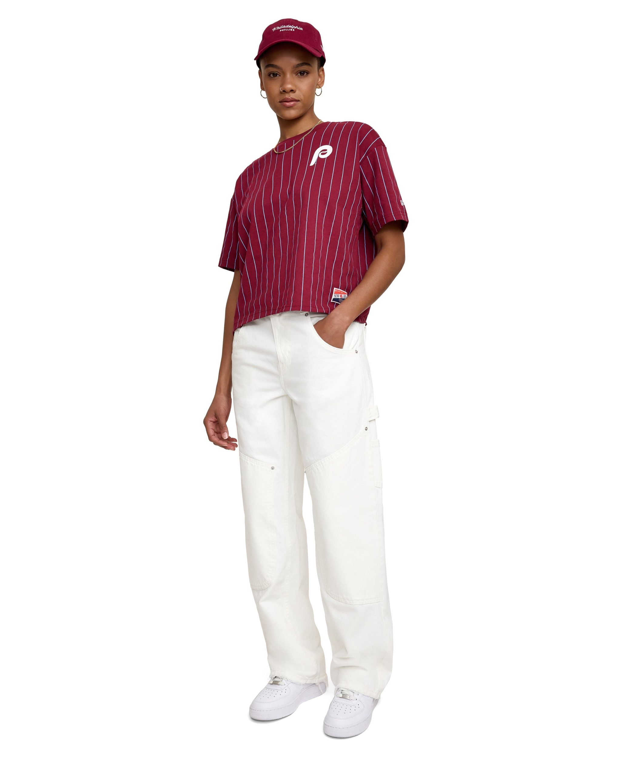 The New York Yankees Throwback Women’s T-Shirt features a screen-printed Yankees logo at the left chest.