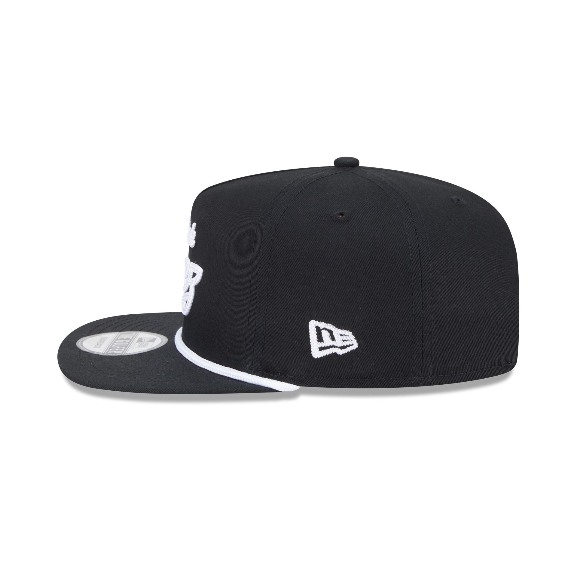 The Utah Jazz Team Text Golfer features an embroidered Jazz script at the front panels with a team logo at the right-wear side and a snapback closure at the rear.