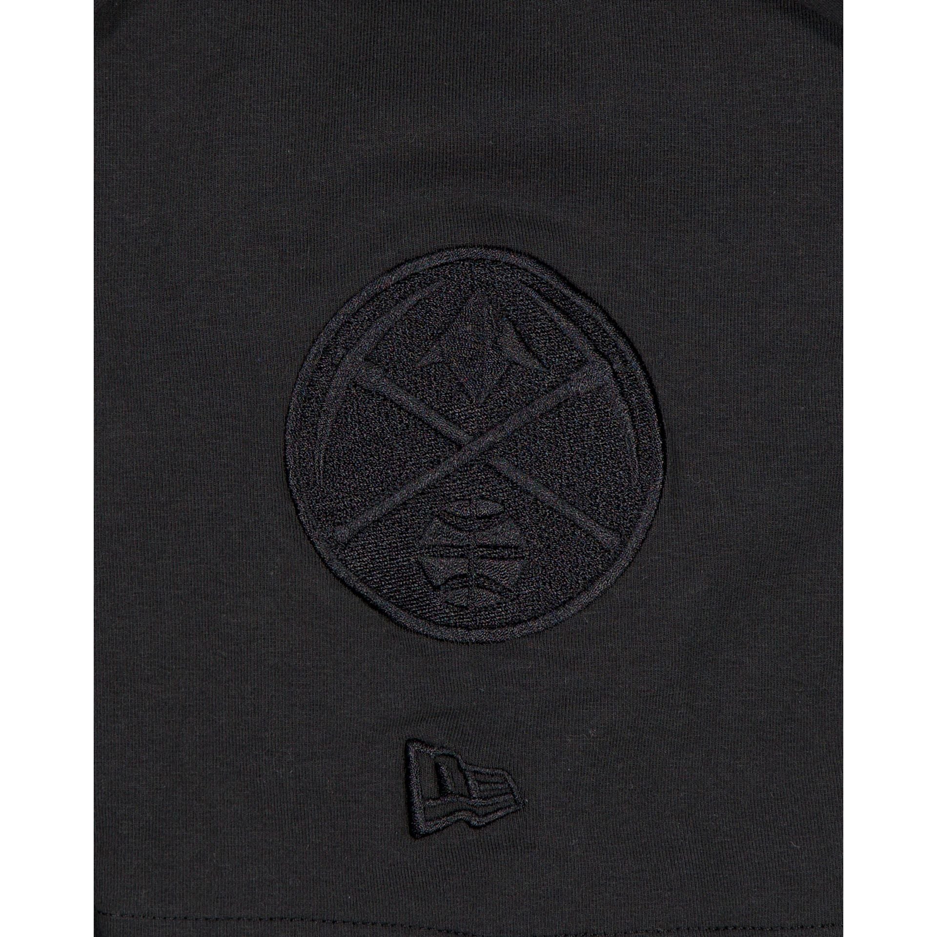 The Denver Nuggets Black on Black Logo Select T-Shirt features a satin applique with a tonal stitch Nuggets wordmark at the chest and an embroidered team logo at the left-wear sleeve.