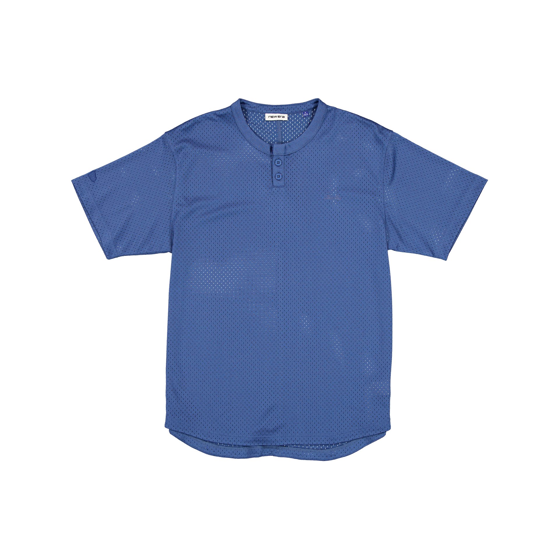 The New Era Branded Galvin 2-Button Mesh Henley Indigo Jersey features: