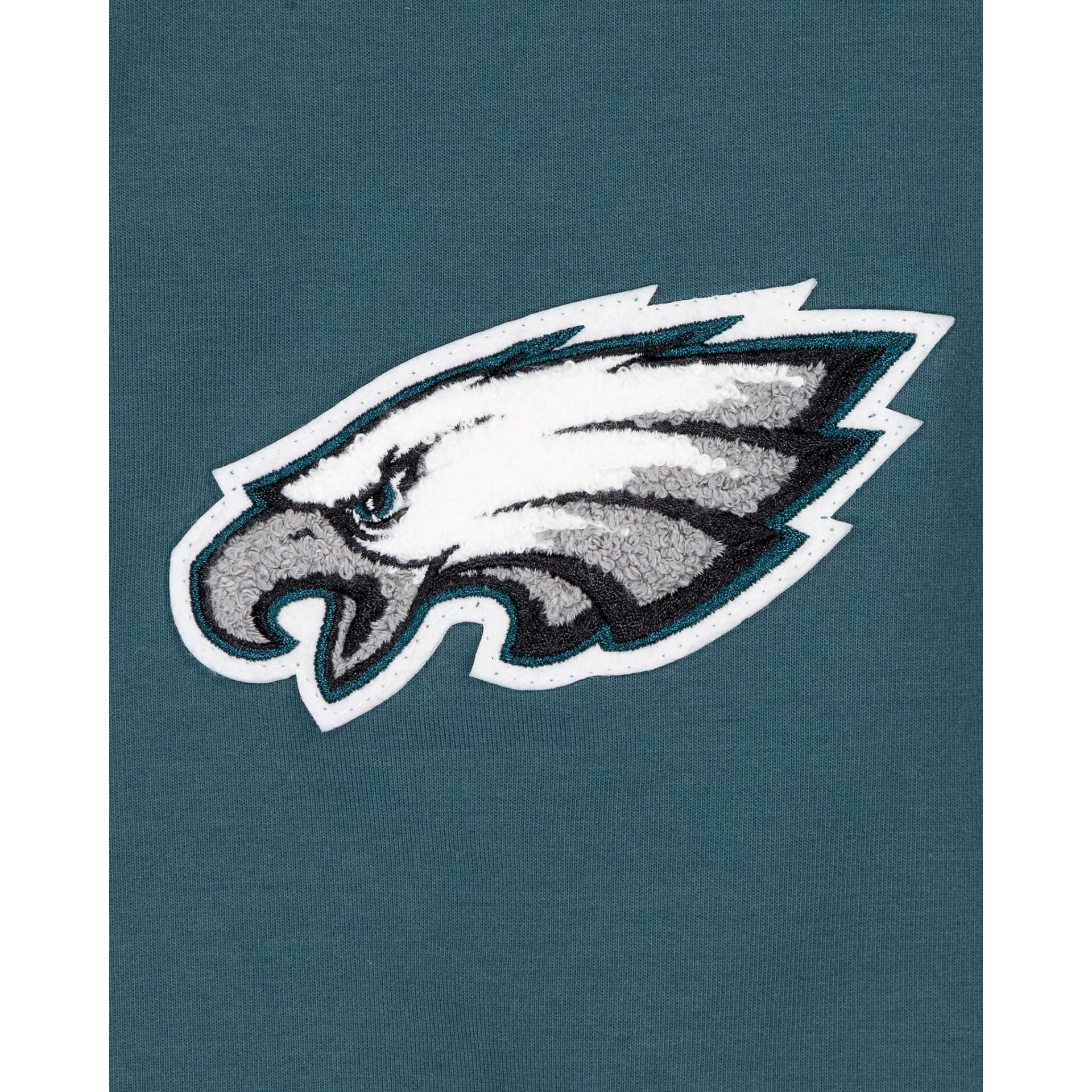 The Philadelphia Eagles Logo Select Hoodie features a chenille applique Eagles logo at the left chest with team patches at each sleeve and an embroidered team wordmark at the rear.