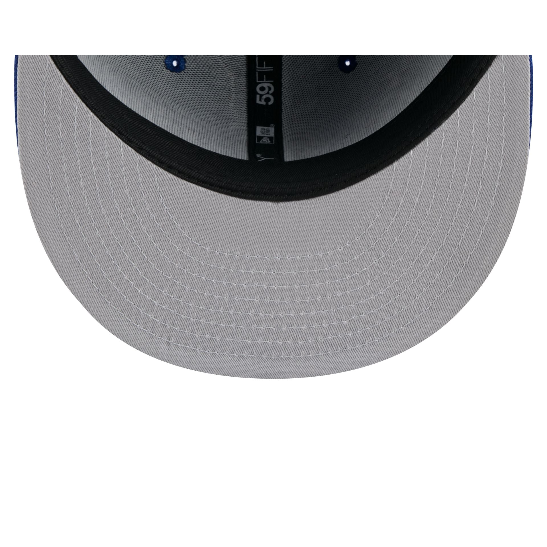 The Toronto Blue Jays Generation Mascots 59FIFTY Fitted features an embroidered Blue Jays baby and adult mascot at the front panels. Additional details include a team logo at the rear and a gray undervisor.